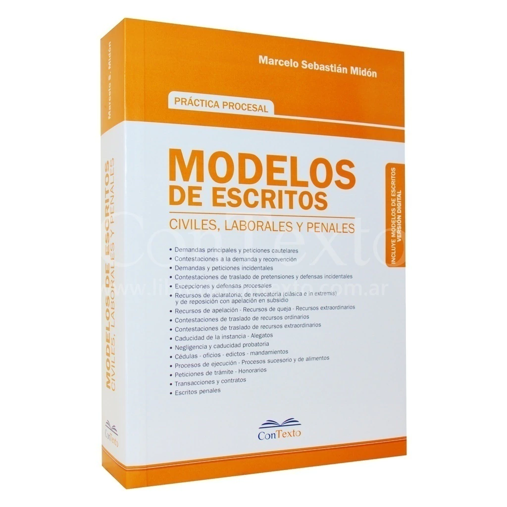 PRACTICA PROCESAL MODELOS DE ESCRITOS JUDICIALES Demandas principales y peticiones cautelares. Contestaciones a la demanda y reconvencion. Demandas y peticiones incidentales. Contestaciones de traslado de pretensiones o defensas incidentales. Excepciones y defensas procesales. Recursos de aclaratoria, de revocatoria (clasica e in extremis) y de reposicion con apelacion en subsidio. Recursos de apelacion. Recursos de queja. Recursos extraordinarios. Contestaciones de traslado de recursos ordinarios. Contestaciones de traslado de recursos extraordinarios. Alegatos. Caducidad de la instancia. Negligencia y caducidad probatoria. Cedulas - oficios - edictos - mandamientos. Honorarios. Procesos de ejecucion. Procesos sucesorio y de alimentos. Peticiones de tramite. Transacciones y contratos. Colaboradores: Mario A. R. Midon Mario Pablo Midon Diego Aní­bal Midon Araceli R. Ballesteros de Midon Juan Pablo Dimenna